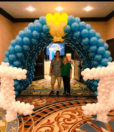 At Texas Balloon Arches we would love to have your business!! Our minimum décor job starts at $150.00. Most indoor 25 ft. 10x10 indoor arches start at $250.00 + tax and delivery. Columns start at $100.00 + tax and delivery. We do charge more for outdoor work. Some general pricing information may be found on our types of décor page. Please e-mail us to request a complete price list (dfwballoon@gmail.com), or call for a personal quote.